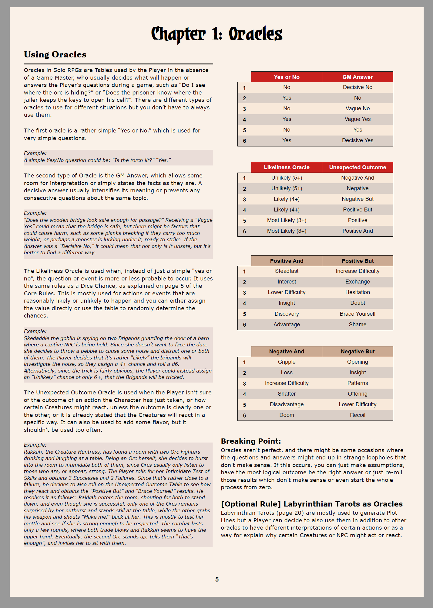 The game is built around exploration, survival and social encounters, with many random tables which can be used to create new dungeons, explore strange lands and even randomly generate new NPCs to interact with.